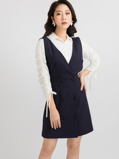 Váy yếm đính hai hàng cúc